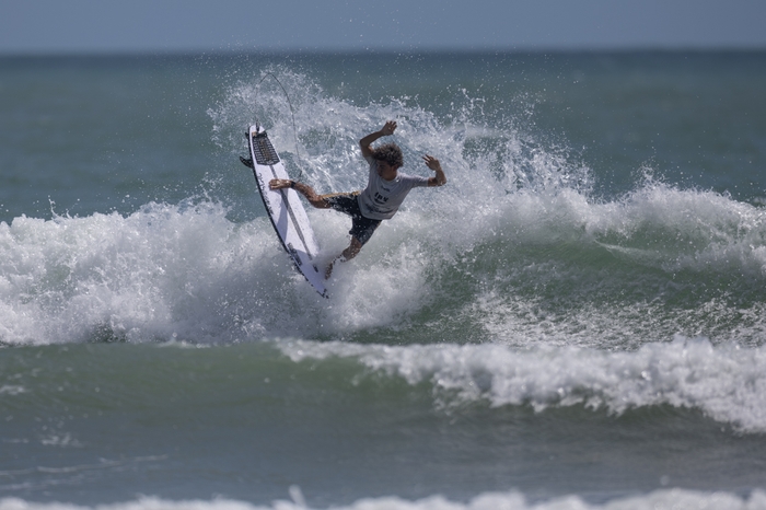 大会最終日は、波のサイズがムネ~カタと前日よりサイズを落としたコンディションでスタート。男子QS3000は、セミファイナルのヒート1で16歳の足立海世選手と19歳の小濃来波選手が対戦。10代の同世代対決は、足立選手が序盤から積極的に攻めてファイナル進出を決めました。ヒート2では、25歳の田中選手が18歳の渡辺壱孔選手を相手に激しいデッドヒートを繰り広げ、昨年3月の日向プロと同様に決勝へ駒を進めました。