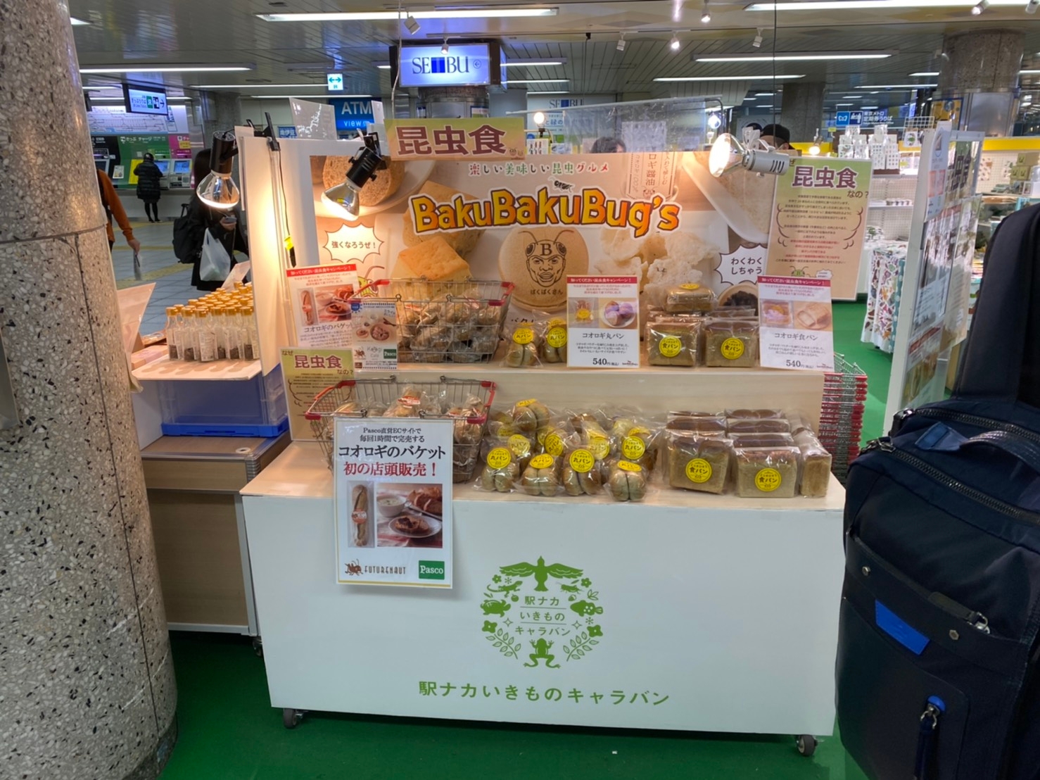 駅ナカで昆虫食の販売及び、いきもの関連のハンドメイド作家さんを集めた、