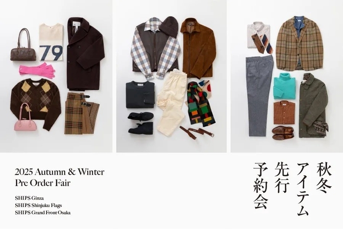 株式会社シップス(代表取締役 社長:原裕章 本社:東京都中央区)は、2025年秋冬コレクションのスタートに先駆け、「2025年秋冬アイテム先行予約会」を開催。本イベントでは、メンズ・ウィメンズの最新アイテムをいち早くご覧いただけるほか、SHIPS 設立50周年を記念した秋冬の限定アイテムも初お披露目いたします。