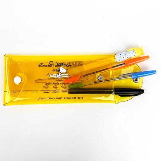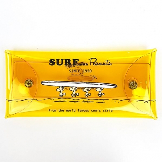 サーフボードを持った4匹のウッドストックのイラストのマルチケースは、使い勝手のいいアイテムのひとつ。