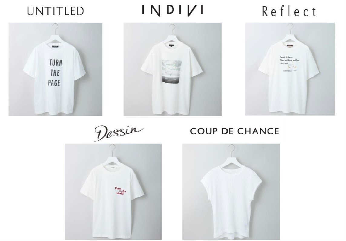 「アンタイトル」「インディヴィ」「リフレクト」「デッサン」「クード シャンス」「スーナウーナ」の6ブランドを横断させるこの企画は、フィールズインターナショナルが提案する商品を、社会貢献に繋げたいという思いでスタートさせました。今後およそ2ヵ月単位で対象アイテムを変えて、各ブランドの店頭とワールド オンラインストアで発売をします。※「スーナウーナ」は9月開始予定の第二弾から商品展開。