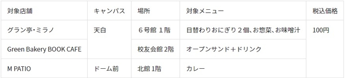 この「100円朝食」は280円分のメニューを100円で提供し、差額は寄付金(名城大学教育振興資金)から補填されています。ご協力のほど、よろしくお願いいたします。