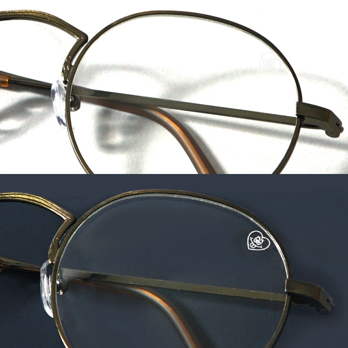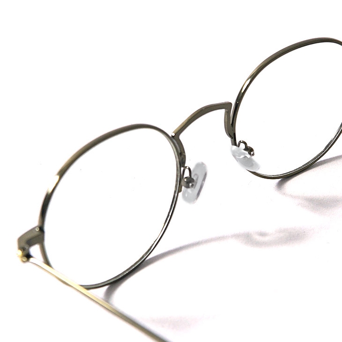ビンテージ風のゴールドフレームが鈍く、渋くアクセントを添えるクリアサングラス。