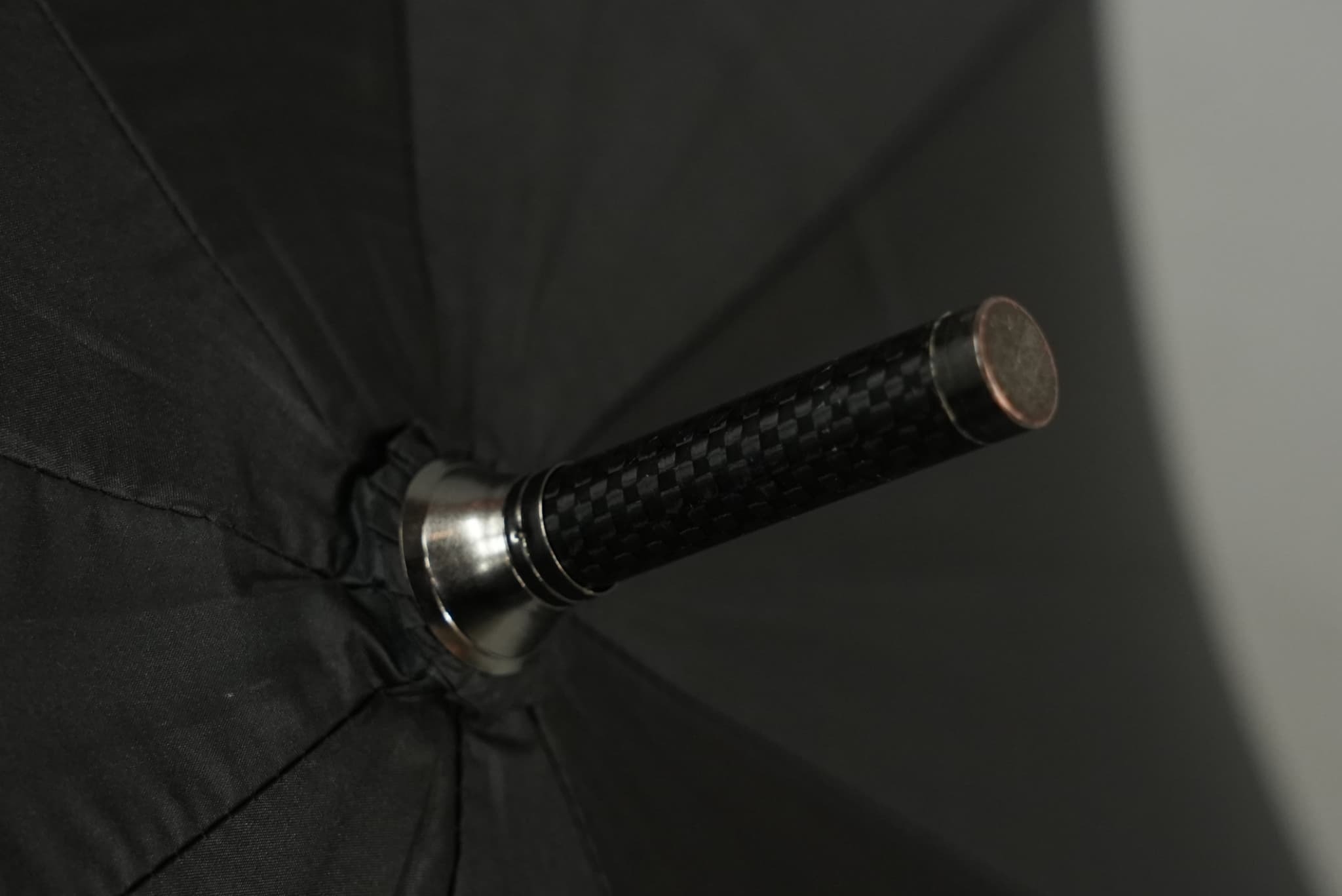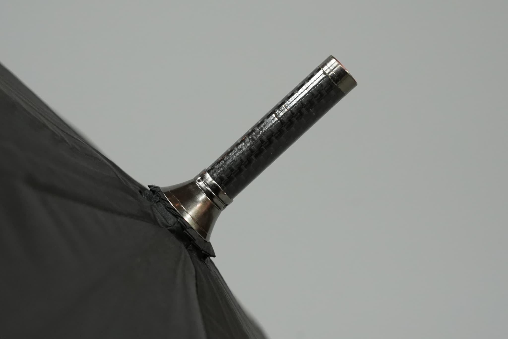 【石突~グリップまで】強くて軽い“カーボンファイバー”を採用した特別な長傘。