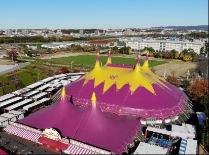 ゆったりとした空間を最大限に活かした劇場型ステージ、あらゆる角度からアーティストの演技を捉えられる客席レイアウト、これまで以上に快適に観覧できる施設で、非日常の体験・感動を味わっていただけます。高さ約20m、最大幅約46mの特大オーバル型テントの臨場感溢れる会場で、迫力ある演出、充実した設備、舞台と客席の一体感を実現しています。