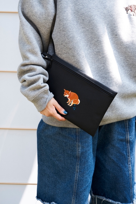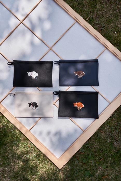 「Shiba-Inu Life×PEGION」コラボ商品は、これまでにボディバッグとポーチを販売しております。デザインは、ボーダレスなセレクト展開で注目を集めるアパレルブランド「PAMEO POSE(パメオ ポーズ)」のデザイナー/ディレクターであるPELIさんによるもので、シンプルでありながらもインパクトがあり、男女問わず楽しめます。柴犬の背中を丸めて立ち止まる無防備な姿を捉えた“POOPING”のオリジナル刺しゅうは、一部だけラメ糸を使用するこだわりや、高級感あふれるハンドステッチ風に仕上げており、柴犬の毛色4種類のパターンを用意しています。