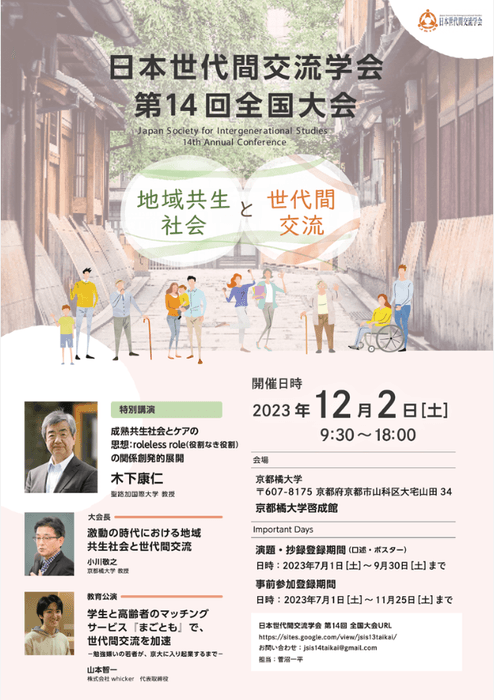 世代間交流学会の開催日は12月2日で、イベントは午前9時から午後6時まで行われます。山本氏の講演は午前11時から11時45分までの予定です。開催場所は、京都橘大学となります。
