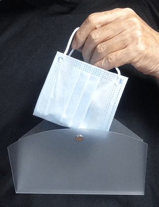 これはマスクが手指を汚染する危険を大幅に減らします。また、抗菌加工されたホルダーに入れたマスクが衣服に直接触れることもありません。