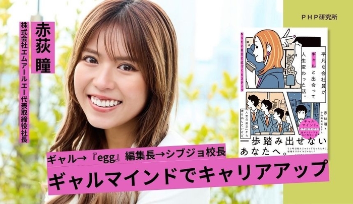 株式会社PHP 研究所(京都市南区・代表取締役社長 瀬津要)は、『平凡な会社員がギャルと出会って人生変わった話。』(赤荻瞳著/税込1,870 円)を2025 年6 月9 日に発売します。著者は元『egg』編集長で現・渋谷女子インターナショナルスクール(通称“シブジョ”)校長の赤荻瞳氏。『egg』読者からシブジョ生徒まで、1,000人を超えるZ世代の夢や目標をプロデュースしてきた経験をもとに、やりたいことがわからない若手会社員の成長を描く「自己分析型ビジネス小説」に挑戦しました。