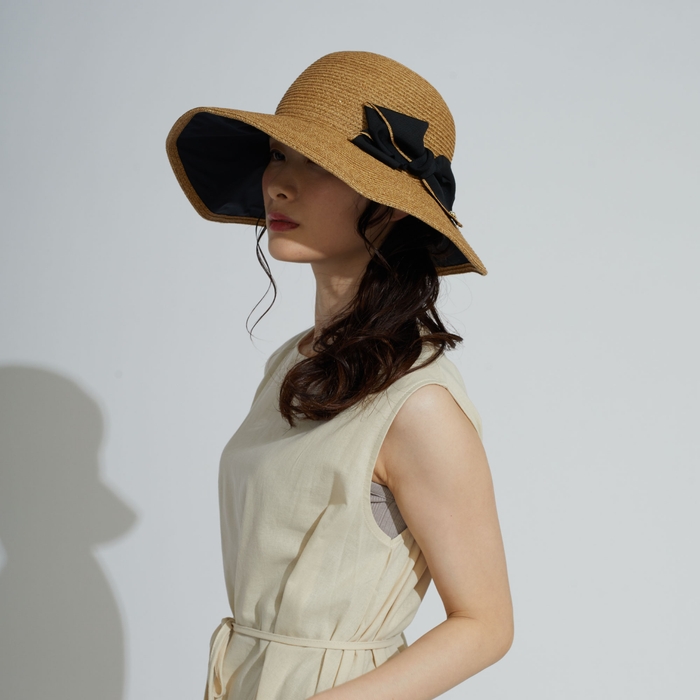・日本の職人により丁寧に編まれたペーパーブレードは柔らかく美しいフォルムに仕上がっており、形態安定ワイヤーにより、つば先まで美しいフォルムをキープします。