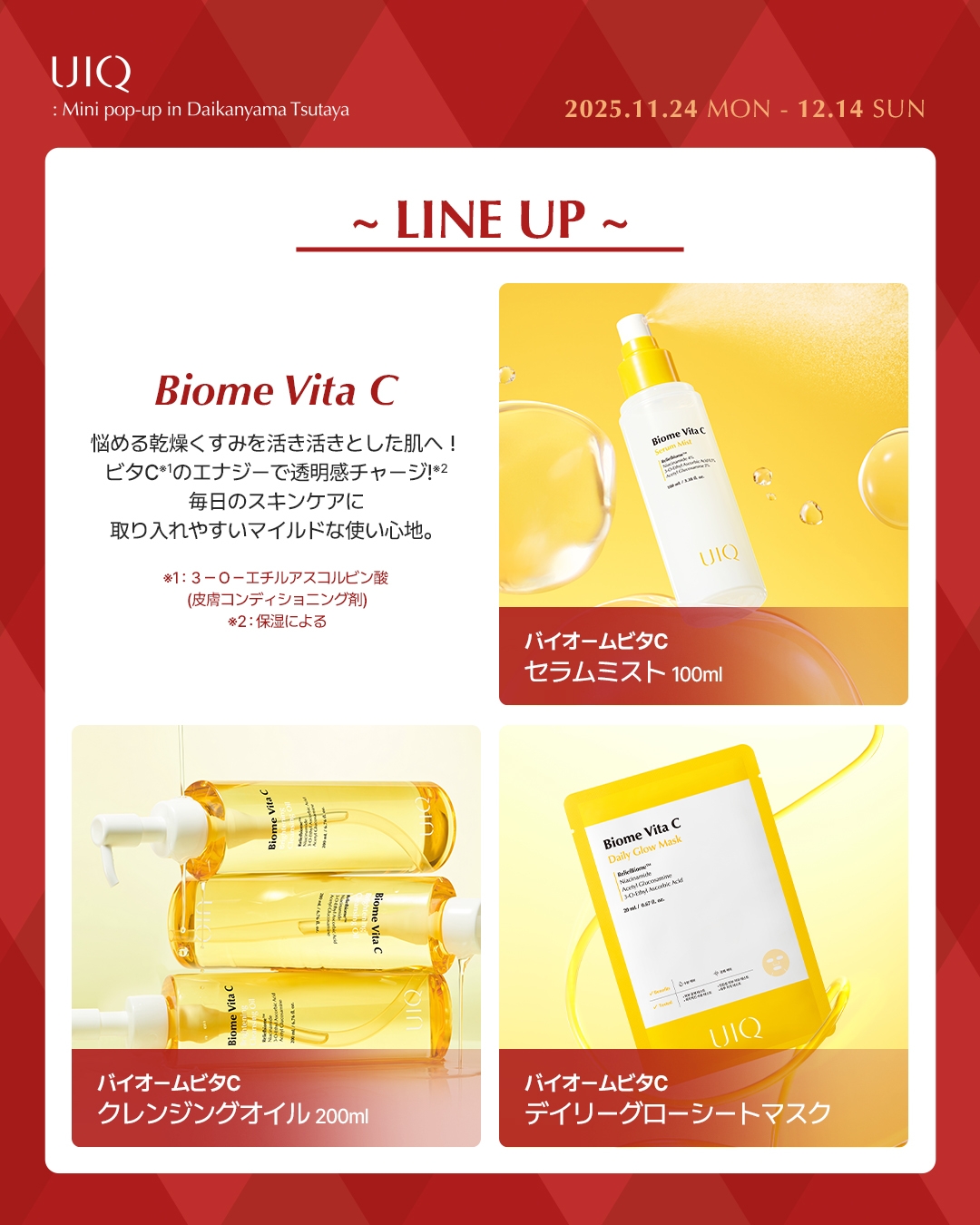 会場では、韓国でも話題を集める「UIQ」の人気商品に加え、新商品「タグミーバイオームハンドクリーム」をいち早くお試しいただけます。