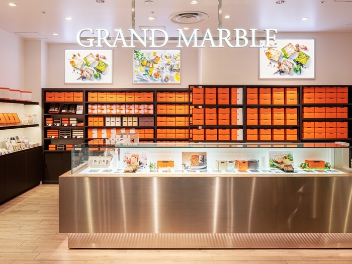 グランマーブルは1996年“マーブルデニッシュ”専門店として、千年の歴史を誇るモノづくりの街、京都で創業しました。以来、「贈る文化を創造する」をコンセプトに京都から全国に感動の連鎖を発信しています。パンでもなく洋菓子でもなく和菓子でもない「マーブルデニッシュ」。デニッシュをカットすると現れる美しいマーブル模様は、ひとつひとつを職人が丹念に織り上げた、手作りの証です。洗練されたオレンジ色のパッケージは、贈り物にも大人気。マーブルデニッシュは、12種の定番アイテムのほか季節限定や店舗限定など多彩なフレーバーを取りそろえています。現在は、京都で4店舗、大阪では高島屋大阪店、阪急三番街南館1階にある新店舗GRANDMARBLE OSAKA、大阪国際空港ターミナル制限エリア内販売ブース、海外では上海にもショップがございます。また、全国の百貨店催事、ブライダルの引菓子などでもご好評を頂いています。