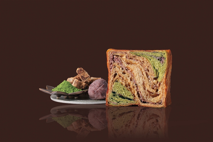祇園辻利の抹茶とプレーンのデニッシュ生地をベースにショコラを織り込んだ至福の逸品。亭主が茶室でお茶をふるまう「いっぷく」から名付けられた特別なマーブルデニッシュです。