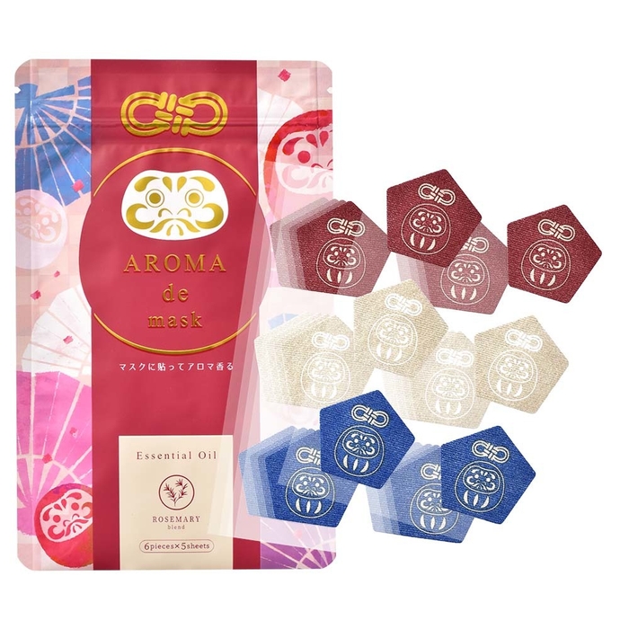 健康総合メーカー『富士産業株式会社』(本社:香川県丸亀市田村町1301、代表取締役:岡田 篤典)は、アロマシールを貼るだけでマスクの不快感を解消できる「アロマdeマスク」の数量限定デザインを12月にリリースします。2020年10月の発売以来、中高年女性を中心に20万個を売り上げたアロマdeマスクが、受験生向けに数量限定デザインで登場です。記憶力や集中力アップの効果が期待できるアロマ「ローズマリー」を中心としたブレンドで、爽やかですっきりとした香りは、勉強に打ち込む受験生にピッタリです。合格を願ってシールデザインには必勝ダルマをあしらい、合格にちなんでシールの形を“五角”形にしています。さらに、香川県にある菅原道真公ゆかりの神社で合格祈願のご祈祷を済ませ、受験に臨む方だけでなく、応援するご家族など周囲の方々にも使っていただけるお守り的なアイテムとなっています。シールは30枚入りで2,200円(税込)。5,000個限定で売り切れ次第、販売終了となります。