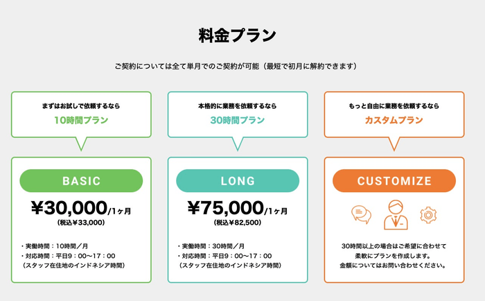 ●「まずはお試し」10時間プランの「BASIC」・・・30,000円 / 1ヶ月