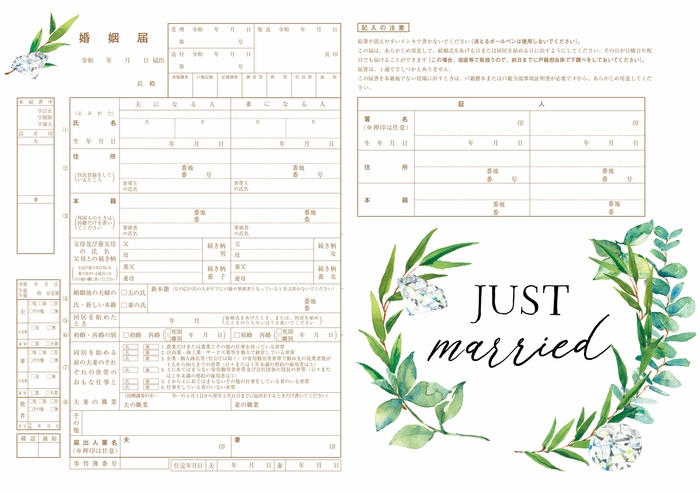 ※役所で発行している婚姻届以外は受理しないとしている自治体もございますので、あらかじめご確認くださいませ。