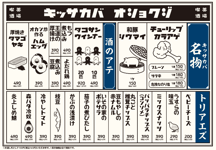 「のんあるキッサカバ」が提供するドリンクは、全てノンアルコールです。キッサカバならではの「クリームソーダ」や「バナナミルク」をはじめ、「オールフリー」や「梅酒サワーテイスト」など“ノンでる気分”になれるドリンクもご用意しています。食事メニューは通常のキッサカバと同じく、名物「チューリップカラアゲ」や「タコサンウインナー」「白ナポリタン」等、サカバのオショクジメニューをお楽しみ頂けます。詳細はキッサカバ特設サイトをご覧下さい。