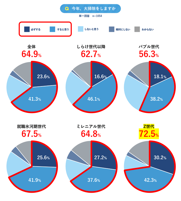 ●64.9%が2024年の大掃除を実施予定、世代別ではZ世代が最多