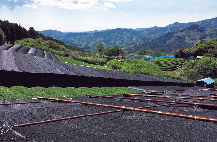 山間地域のかなり急斜面を持つような茶園でも手間暇のかかる被覆栽培を行うことで、他産地に比べ上質で深く豊かな奥行きのある味わいになります。