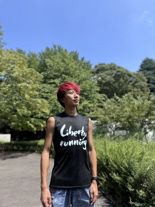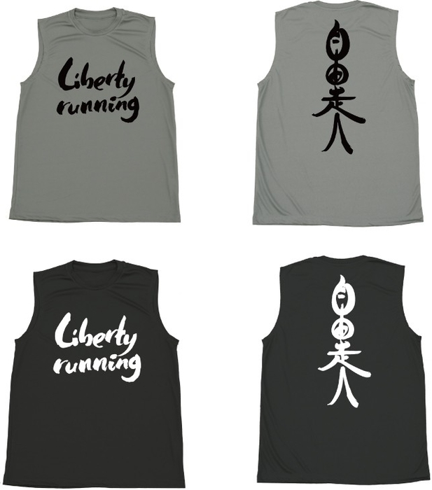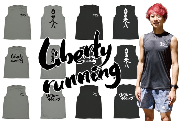 こわだ君が掲げる、「Liberty Running」「リバティーランニング」「自由走人」がプリントされたノースリーブ3種と、赤い髪のキャラクターで親しまれている、こわだ君がモチーフのイラストがプリントされたビブス留め1種を販売します。