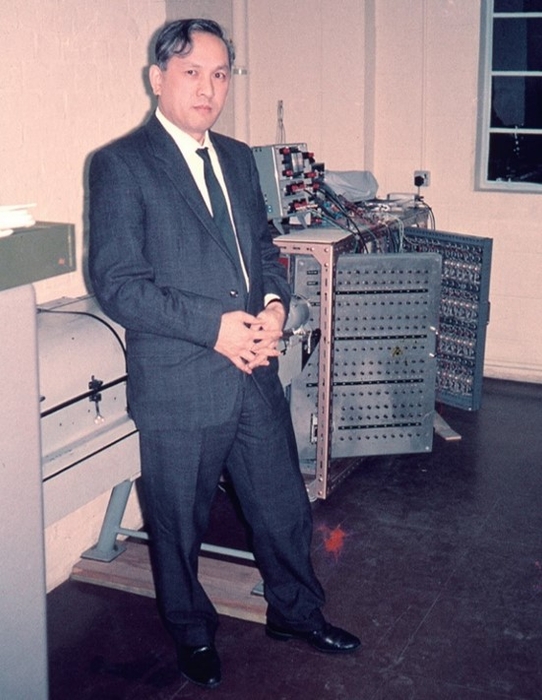 ノーベル賞作家カズオ・イシグロの父親、石黒 鎮雄(1920~2007)は優れた海洋学者でした。コンピュータなどのない時代に、膨大なデータを紙媒体で収集し、緻密な計算と模型による波形(あびき)シミュレーション※ を幾度も重ねて、解析用のアナログ計算機「海潮波動シミュレーション電子回路模型」を開発しました。その功績は国内よりも先に海外の研究者の目に止まり、奨学金を得て留学。研究成果をあげて、東京大学から理学博士の称号を与えられました。その後、イギリスの国立海洋研究所所長からの依頼で、北海の高潮の研究をするため、昭和35年(1960年)に長男のカズオ・イシグロを含む一家全員でイギリスに移住しました。仕事のかたわらオーケストラでチェロを弾くなど音楽に精通しており、残されたエッセイからは文才もあったことがわかります。