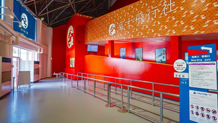 座席を包み込むような巨大スクリーンに富士山の映像が映し出し、圧倒的なスケールの飛行体験を提供するアトラクションです。