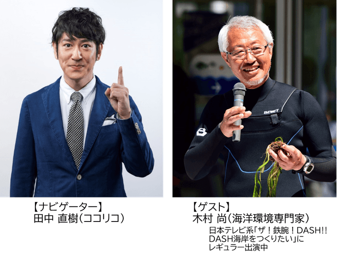 大田区立小学校4~6年生の児童とそのご家族1,000組(最大)を対象に、ナビゲーターのココリコ田中さんとゲストの海洋環境専門家の木村尚さんから「東京湾に面する大田区民だから知っておきたい 学校では学べない不思議や魅力」をご紹介いただくオンラインイベントです。