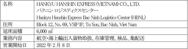 当社ベトナム現地法人である阪急阪神エクスプレス(ベトナム)は、ベトナムの首都ハノイ近郊のバクニン省(VSIP Bac Ninh工業団地)に新倉庫を開設し、2022年2月8日より営業を開始しました。