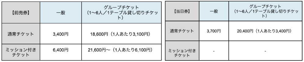 ※ミッション付きチケットをグループチケットでご購入いただく場合、ミッション付きの希望人数をご購入時にお選びいただけます。グループ全員がミッション付きをお選びいただくとよりお楽しみいただけるためオススメです。