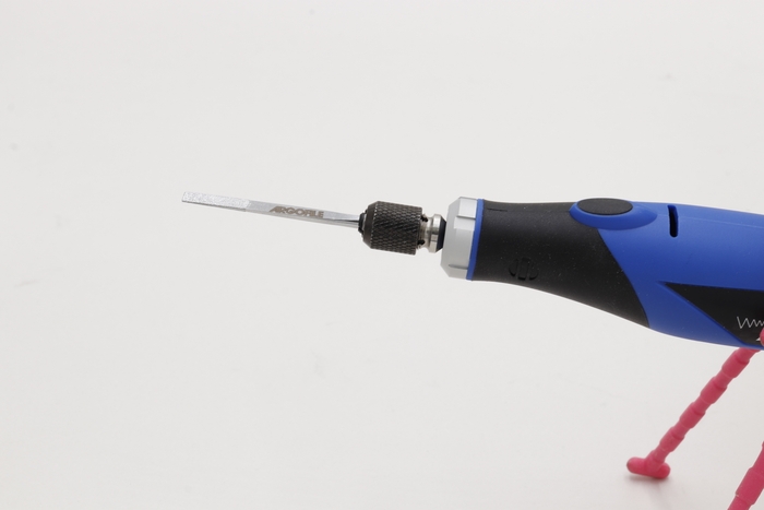 当社のヒット商品、テーパー電着ダイヤモンドヤスリ「DTファイル」を電動ストロークサンダー アルティマシリーズに取り付けて使用できるようアレンジしました。繊細な箇所のヤスリ掛けに紙・布ヤスリの貼り替えなしに使えます。番手も、#200、#400、#600と3種類ラインナップ。先端厚:0.3mm、幅:3.0mmと繊細な箇所のヤスリ掛けに対応。側面にもダイヤ砥粒が電着されているので、縦に取り付けてのヤスリ掛けもできます。