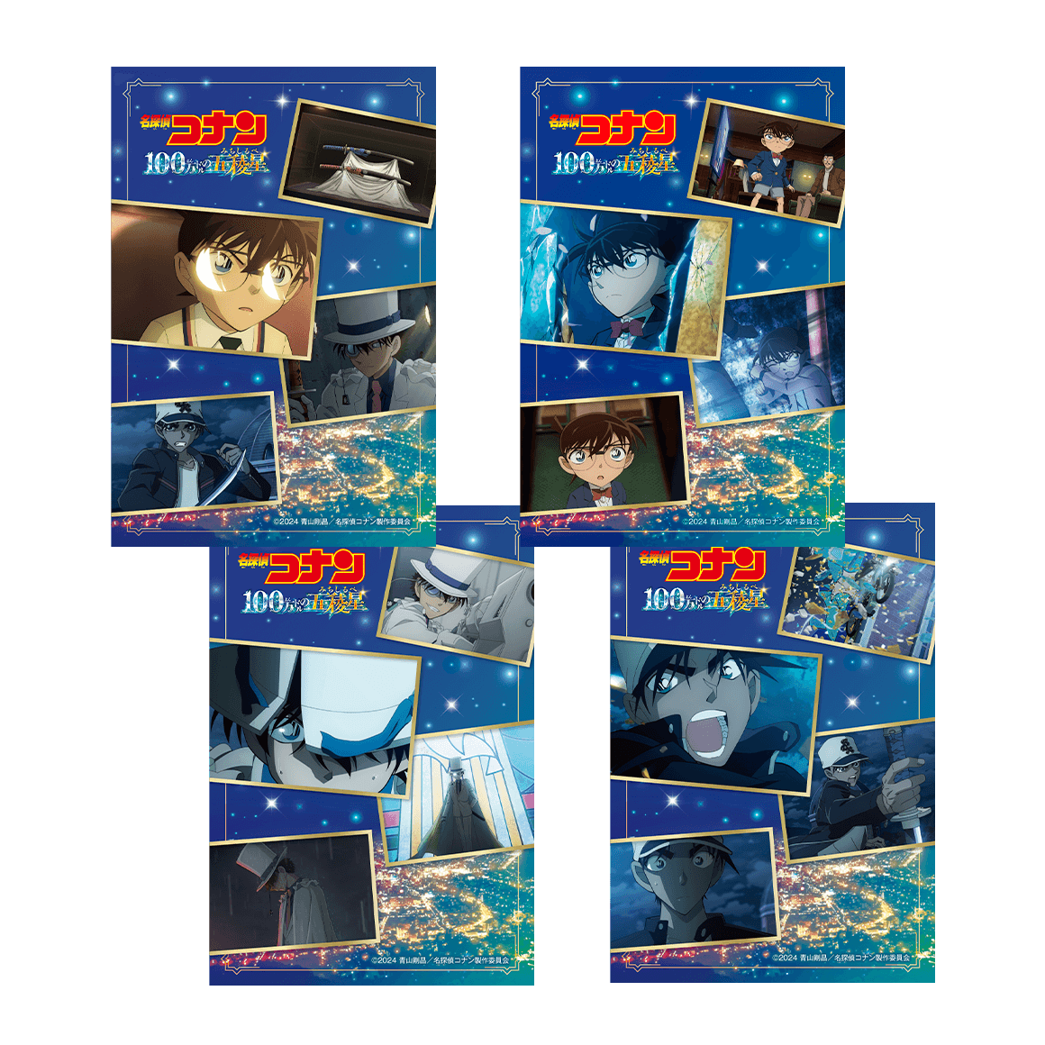 期間中、劇場版『名探偵コナン 100万ドルの五稜星(みちしるべ)』の鑑賞後のチケットをご持参のうえ、名探偵コナン関連商品をご購入いただくと、特製ポストカード(全4種)をランダムで1枚プレゼント!