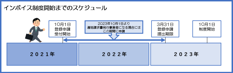 インボイス制度を2年後の令和5年10月1日から受けようとする場合には令和5年3月31日までに提出する必要があるので、注意が必要です。
