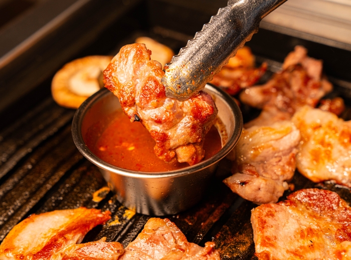 看板メニューの「韓国レトロ式塩焼き」は、鹿児島県産「かごしま黒豚」をヨプオリジナルの製法で味付けし、焼き上げます。