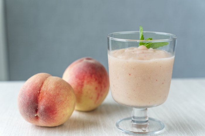 生の桃を丸ごと1個使用した桃感たっぷりのスムージーです。ひんやりさわやかな味わいで、夏にぴったり!