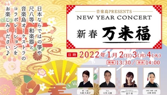 ■『音楽島presents NEW YEAR CONCERT 新春 万来福」2022年1月2日~4日開催‼