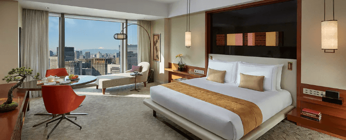 今回みゅうJapanでご用意するのは、シティビューまたは東京スカイツリービューのデラックスルーム(50平米)、東京スカイツリービューのデラックスプレミアルーム(50平米)、さらに富士山を臨むマンダリングランドルーム(60平米)の3タイプ。広々としたお部屋から見る東京の夜景を想像してみてください。ここはまさに都会の摩天楼!