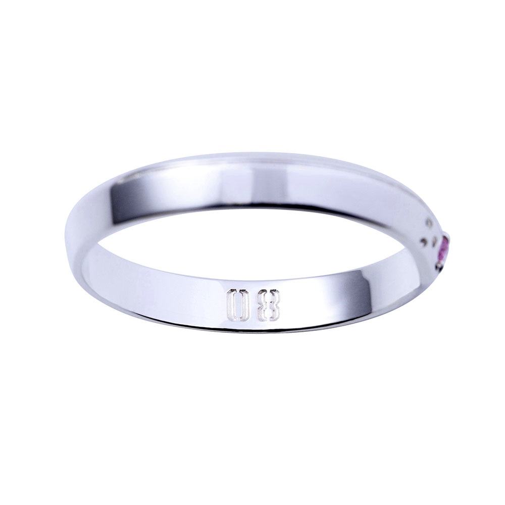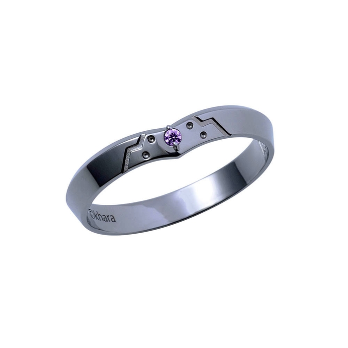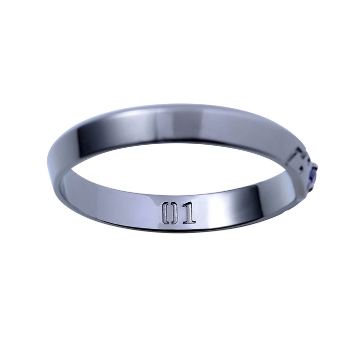 エヴァ8号機の頭部からデザインを取り込み、中央には機体メインカラーのストーンをセット。内側には機体番号を刻印。機体をイメージしたシルバーカラーで仕上げました。