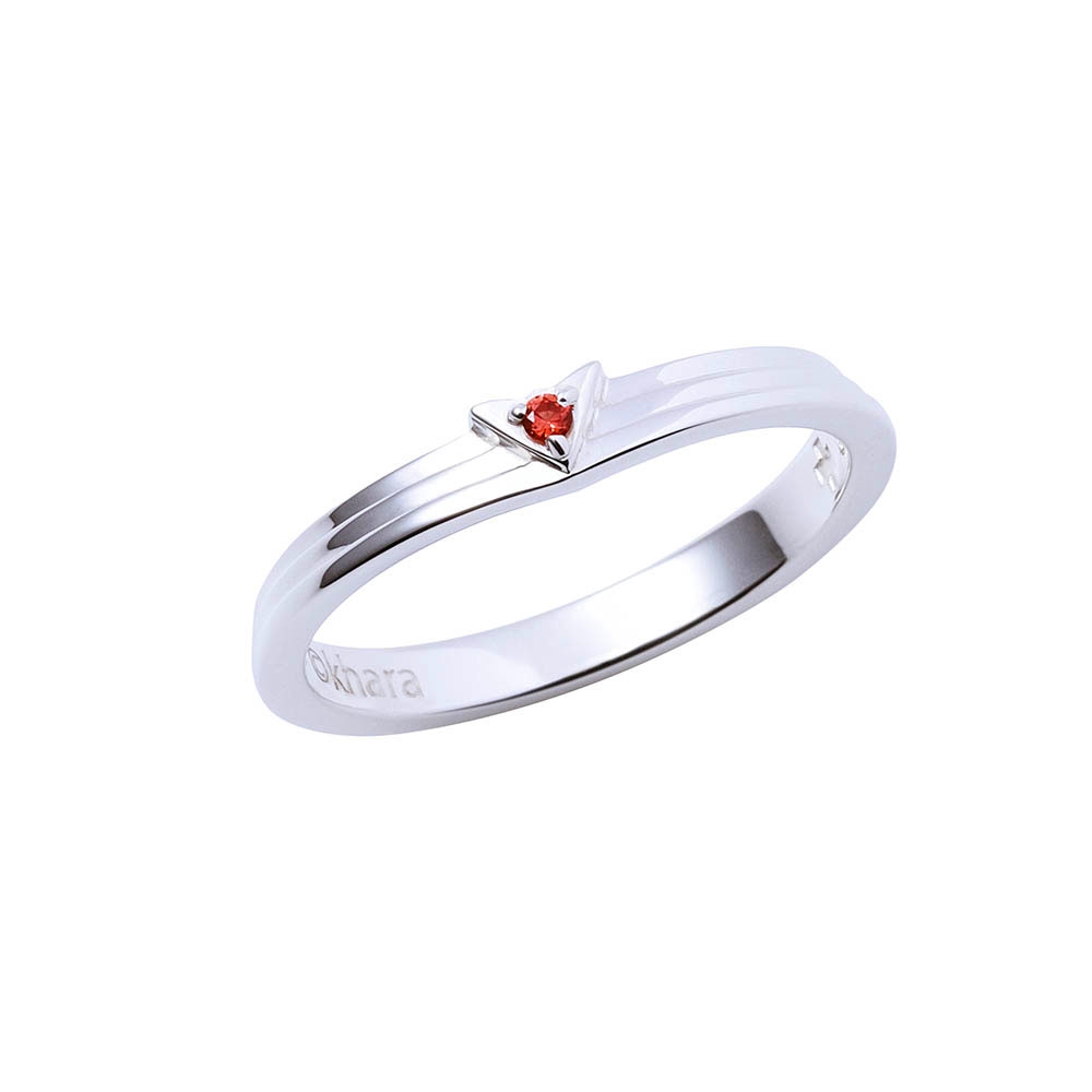 ミサトの帽子をイメージしたV字フォルムのリングに、艦長服カラーのストーンをセット。