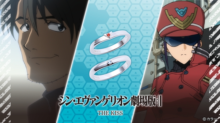 機体をイメージしたシルバーリング、プラグスーツをイメージしたシルバーネックレス、加持リョウジ・葛城ミサトのペアリング 全11種のラインアップ!