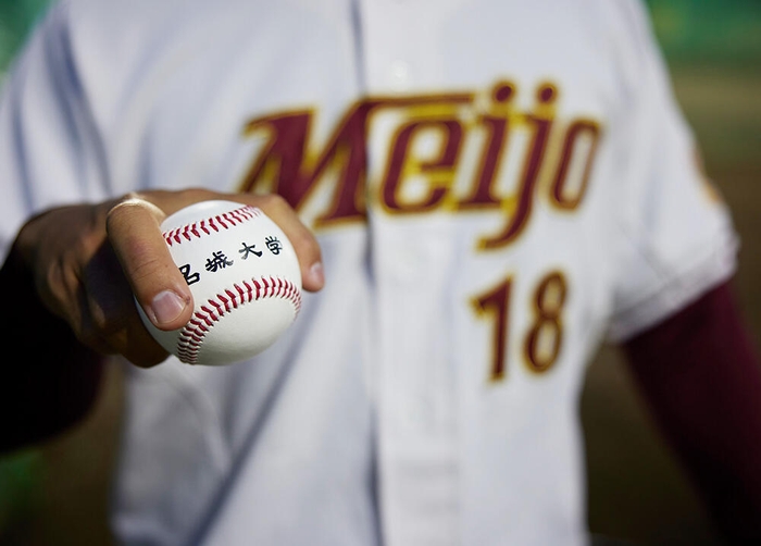 右投げ右打ちだが、本来は左ききで、箸もペンも左手で持つ。直球の回転数が2700回を超え、メディアを驚かせた。憧れの選手は、ニューヨークメッツで活躍し、“おばけフォーク”で名を馳せた千賀滉大投手。休日でも「野球から離れるのが怖いから」と、筋トレやランニングをしてしまうという。好対照をなす松本選手とともに名城大野球部を牽引し、いくつもの勝利に導いた。