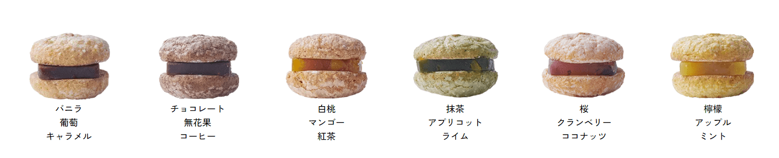 キャラメル / チョコレート / 白桃&マンゴー / 抹茶 / 桜 / 檸檬