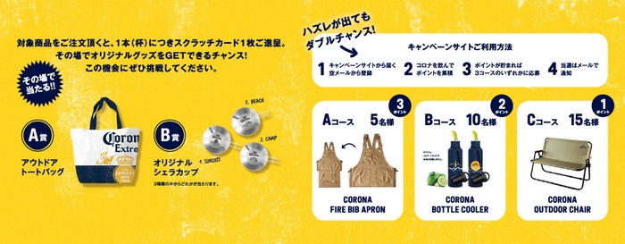 ライムを挿したコロナ エキストラに加え、コロナの風味と爽やかさを活かしたコロナカクテルを販売いたします。対象商品のでオリジナルグッズが当たるプレゼントキャンペーンも実施いたします。
