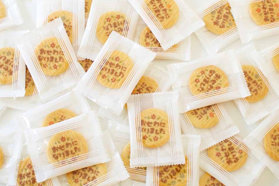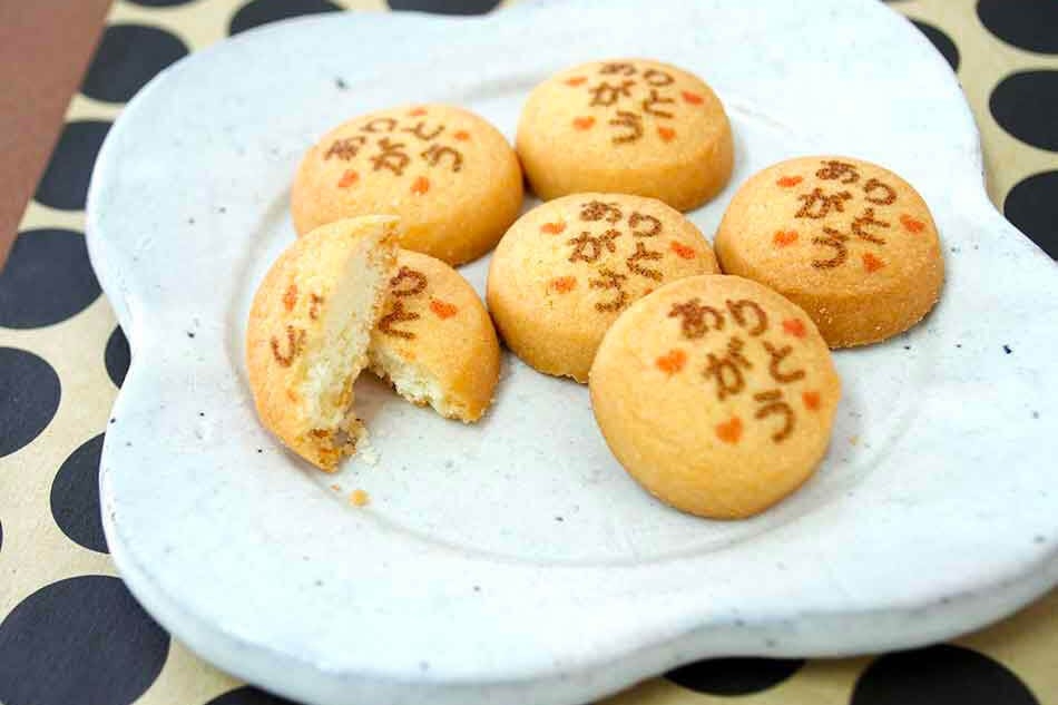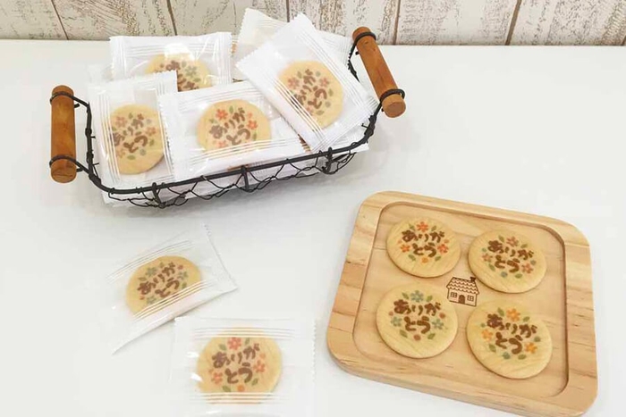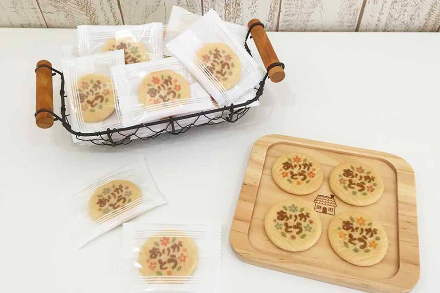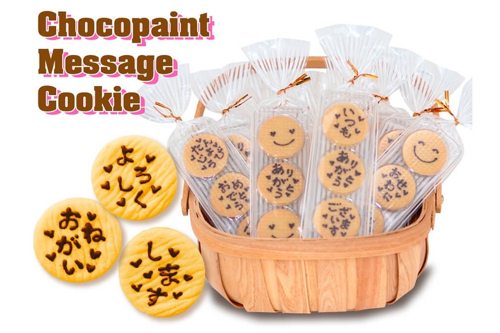 チョコレートでメッセージを描いたクッキー。感謝やお祝いの気持ちを伝えるのに最適です。