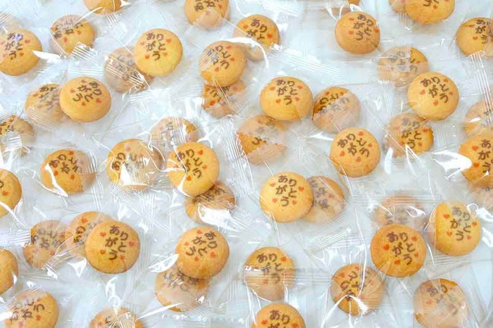 職場やイベントでの配布に便利な大容量パックもラインナップ。例えば、大袋ありがとうバタークッキーや超大袋ありがとうクッキーは、たっぷり入ってお得です。