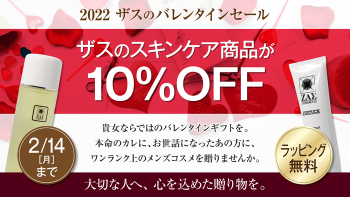 メンズコスメのザスインターナショナルを運営する、日本ブレーンキャピタル株式会社(本社所在地:東京都渋谷区、代表:野々下 一美)は、公式サイト・Yahoo!ショッピング店で 『 バレンタインキャンペーン 』 を実施します。