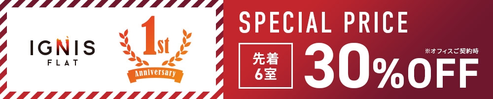 【先着6室・月額利用料30%OFF】東京・水道橋のオフィス&コワーキング「IGNIS FLAT」で 1周年記念キャンペーン実施中