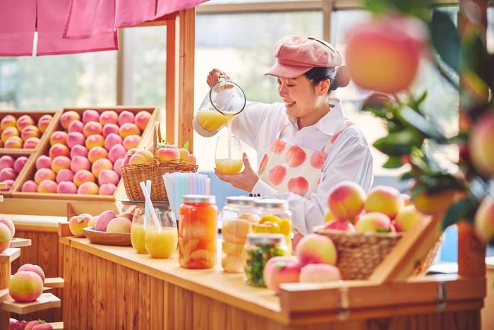 10日~2週間ごとにさまざまな品種が出回る福島の桃。当イベントでは、桃を使ったドリンクを品種ごとに飲み比べできる「ももモクテルバー」が登場します。新鮮なまま品種ごとに瞬間冷凍した桃を使用し、ゲストに好きな品種を選んでもらい目の前でモクテルを作ります。時期に応じて3~5種類の桃を用意し、スタッフに品種ごとの味の違いを聞きながら、選ぶことができます。