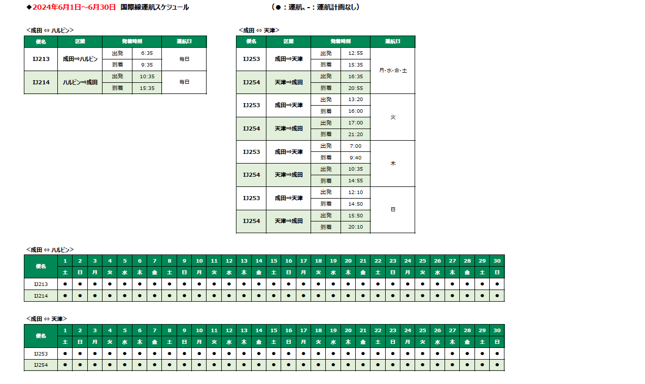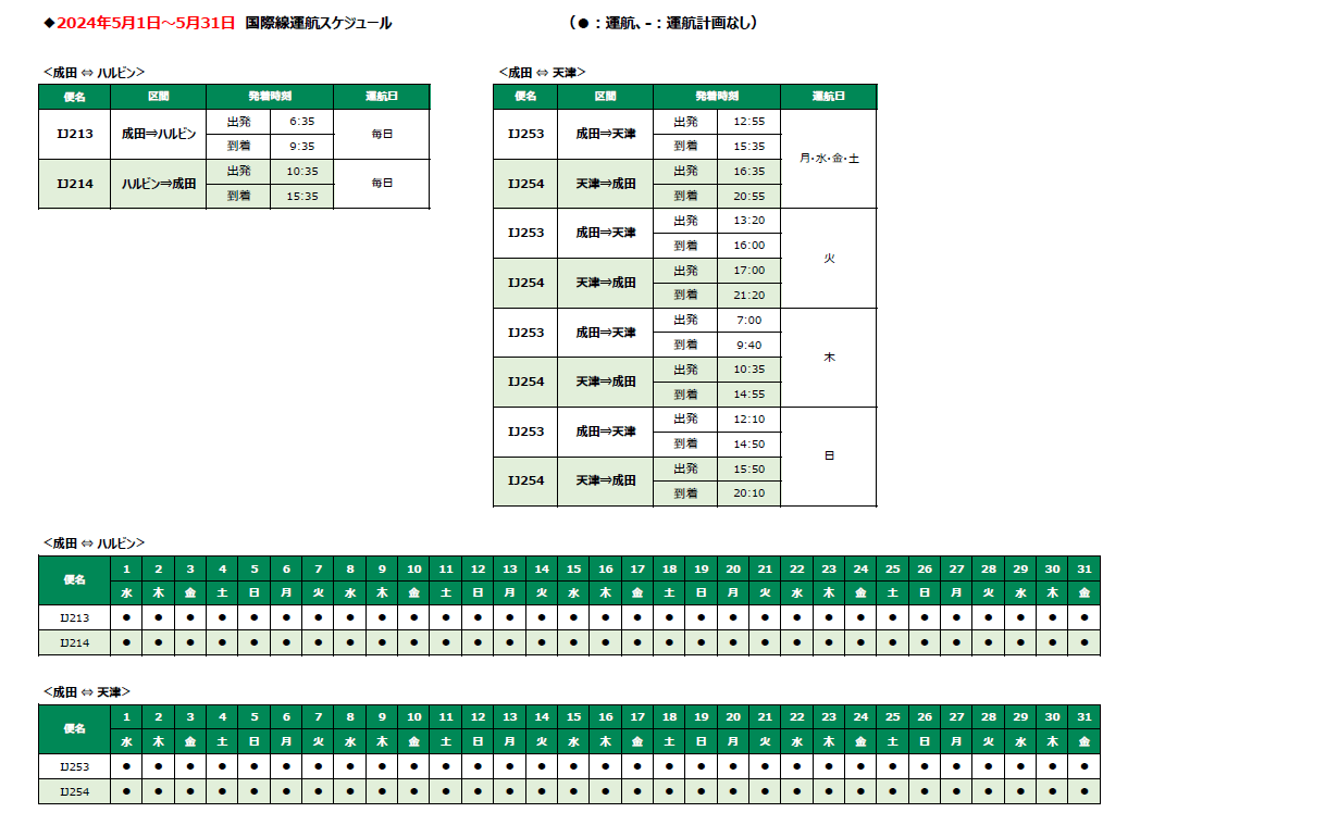 スプリング・ジャパン 2024年夏ダイヤ ハルビン線・天津線の販売開始について