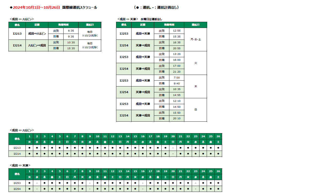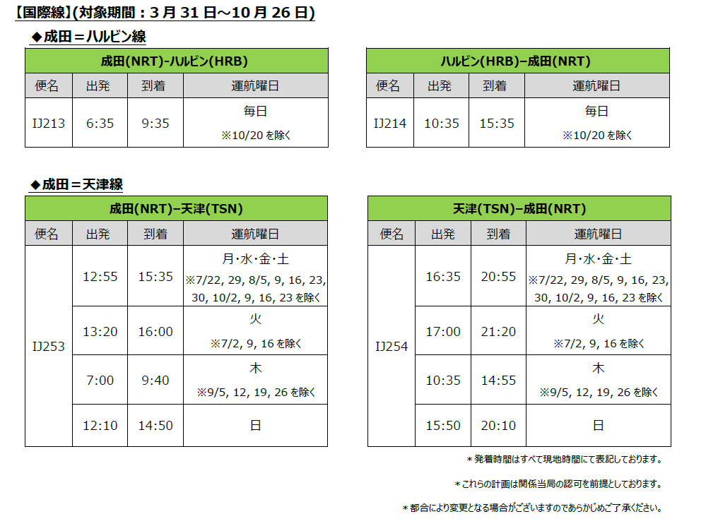 JALグループのLCCであるスプリング・ジャパン株式会社(以下:スプリング・ジャパン)は、本日15時より、2024年3月31日(日)から10月26日(土)までの成田=ハルビン線および成田=天津線の販売を開始します。