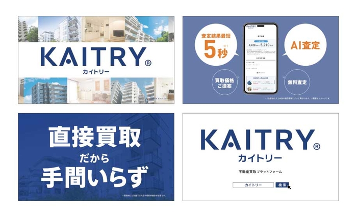 ユーザーは、最短5秒のAI査定によって、PC(パソコン)やスマホ、タブレットなどでいつでもどこでも自身のマンションがいくらで売却できるかを確認できます。売却依頼から最短3日で現金化も可能です。また『KAITRYリノベ物件購入(https://kaitry.com/buy)』ページでは、当社グループが自ら売主として取り扱っている全国のリノベ済マンションを掲載しており、物件を直接購入いただくことも可能です。お客様のスケジュールに合わせた、気軽で楽しい住み替えをサポートしています。